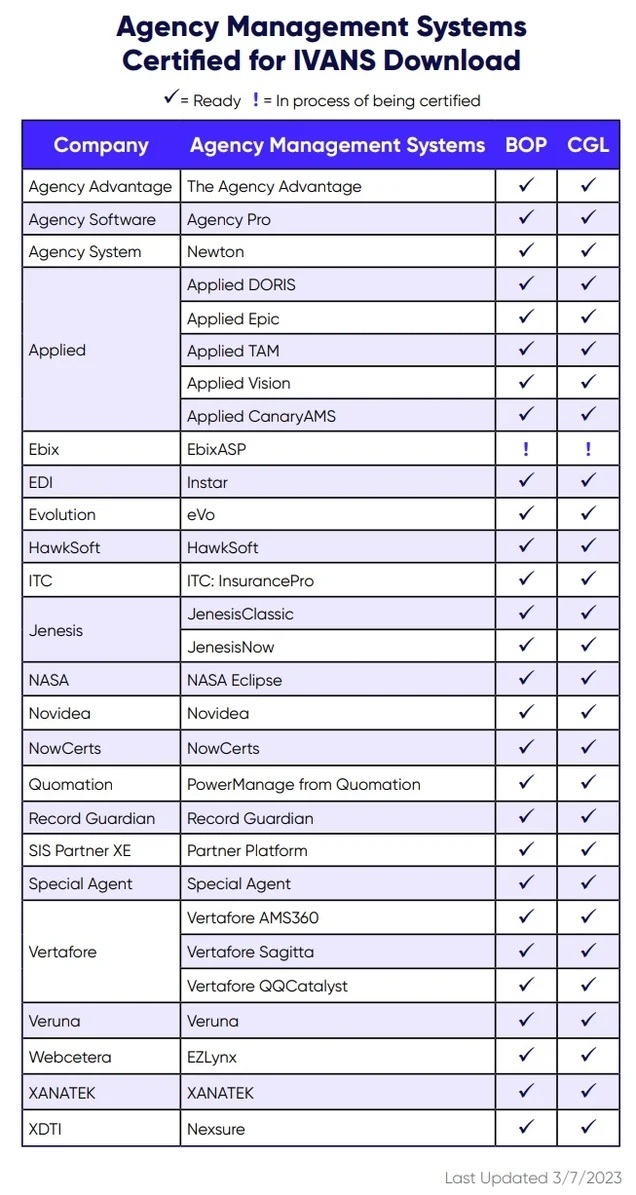 Currently, Commercial Lines policy download is available for certified Agency Management Systems (see below table).